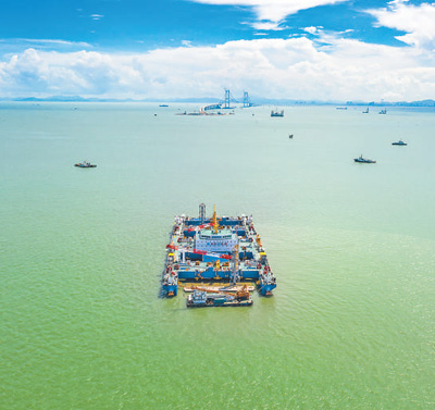 全長(zhǎng)24公里的深中通道位于珠江出??谙掠?,是粵港澳大灣區(qū)核心交通樞紐工程。工程集“橋、島、隧、水下互通”于一體,其中海底隧道長(zhǎng)約6.8公里,包含沉管段約5公里,由32個(gè)管節(jié)及1個(gè)最終接頭組成。