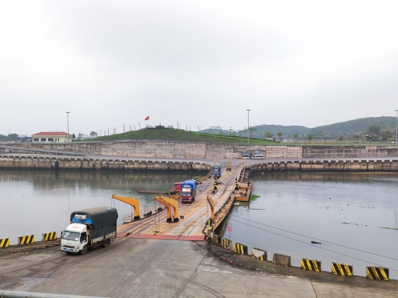 跨境貨運(yùn)車輛通過連通中越兩國的北侖河互市浮橋(4月12日攝)。新華社記者 朱麗莉 攝