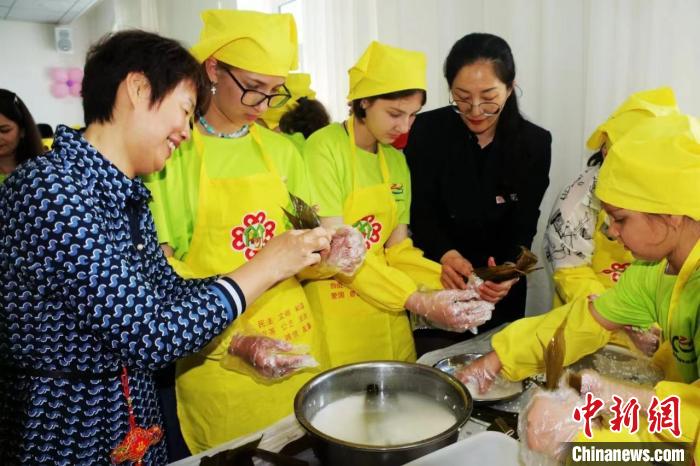 俄羅斯青少年學(xué)習(xí)包粽子 邱齊龍 攝