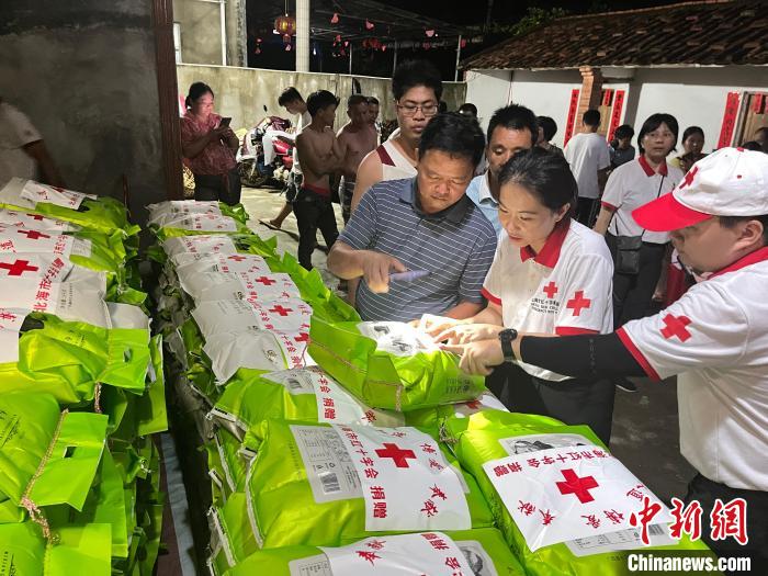 圖為北海市紅十字會在災區(qū)派送大米?!”焙J屑t十字會供圖