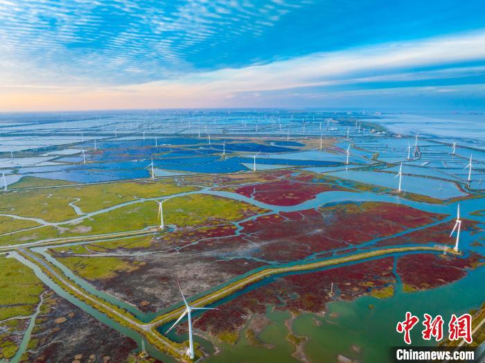 黃海濕地灘涂上風車林立。(資料圖) 孫華金 攝