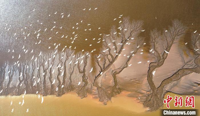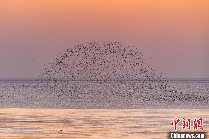 鳥兒在條子泥濕地上空飛翔。(資料圖) 孫藝 攝