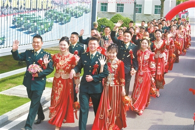 “感謝每一名忠誠奉獻(xiàn)的軍人,感謝每一位默默支持的軍嫂,我們將全力為大家做好服務(wù)保障……”隨后,軍地領(lǐng)導(dǎo)為新人證婚、致辭,表達(dá)美好祝愿。