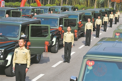 圖②:臨時(shí)車隊(duì)列隊(duì)等候新人。