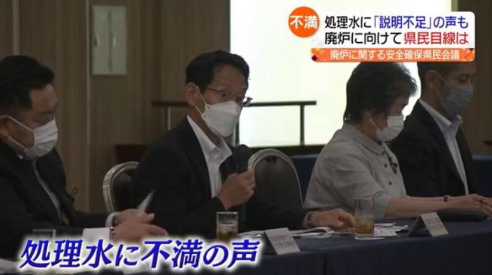 當(dāng)?shù)貢r(shí)間13日下午,日本福島縣民眾召開(kāi)會(huì)議,參加者針對(duì)日本政府計(jì)劃在今夏正式向大海排放核污水一事表示不滿(mǎn)。圖片來(lái)源:福島中央電視臺(tái)視頻截圖