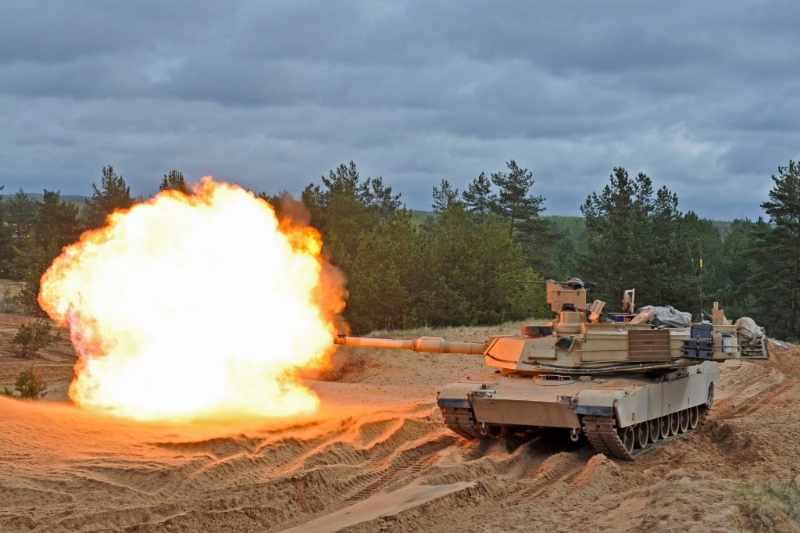 2015年5月7日,在拉脫維亞阿達(dá)日軍事基地靶場(chǎng),一輛美軍“艾布拉姆斯”M1A2主戰(zhàn)坦克進(jìn)行實(shí)彈射擊訓(xùn)練。新華社記者郭群攝