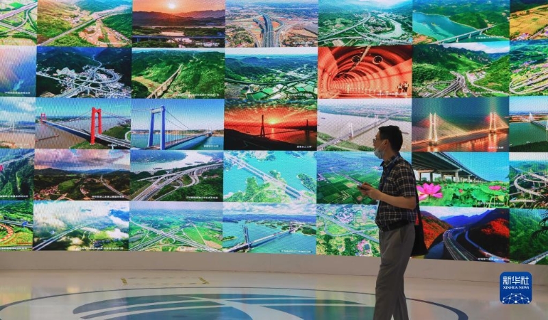 6月14日,觀眾在觀看交通成就展示墻。