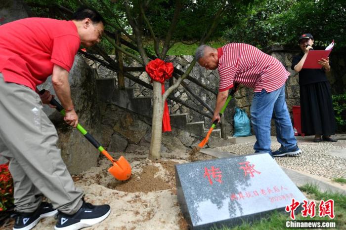 中新社福州6月14日電 (葉秋云)14日上午,位于福建省福州三山人文紀(jì)念園英雄廣場的福州抗日志士紀(jì)念墻旁,來自海峽兩岸的60余名抗戰(zhàn)老兵后人攜手植下一棵紅楓樹,起名為“抗戰(zhàn)精神傳承樹”,并在樹下共立一座“傳承碑”以言志。