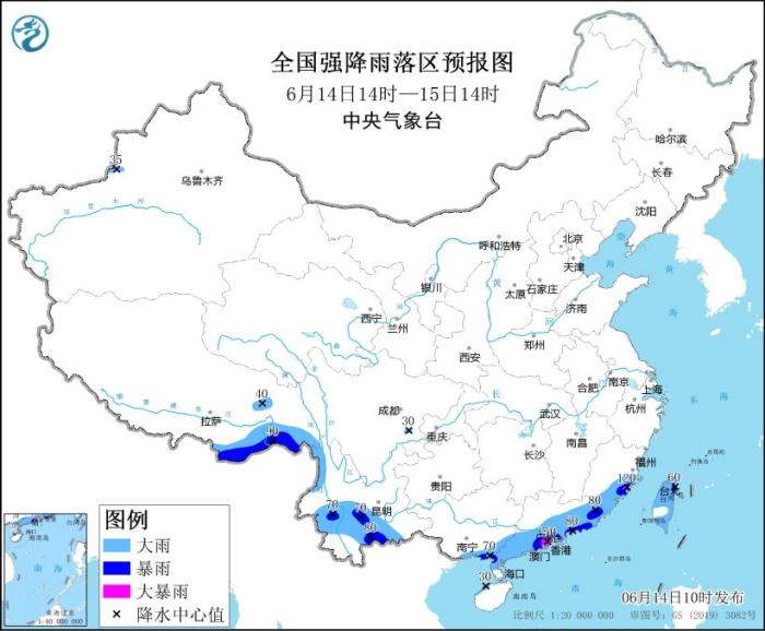 中新網(wǎng)6月14日電 據(jù)中央氣象臺(tái)網(wǎng)站消息,中央氣象臺(tái)6月14日10時(shí)繼續(xù)發(fā)布暴雨藍(lán)色預(yù)警:預(yù)計(jì),6月14日14時(shí)至15日14時(shí),廣東中南部、廣西東南部、福建東南部、臺(tái)灣島以及云南中南部和西北部、西藏東南部等地部分地區(qū)有大到暴雨,其中,福建東南部沿海、廣東西南部沿海等地局地有大暴雨(100~150毫米);上述部分地區(qū)伴有短時(shí)強(qiáng)降水(最大小時(shí)降雨量30~60毫米,局地可超過(guò)80毫米),局地有雷暴大風(fēng)等強(qiáng)對(duì)流天氣。
