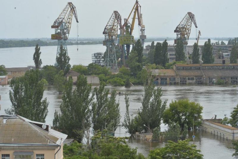 這是6月10日在赫爾松市拍攝的被洪水淹沒的第聶伯河一處河港。新華社發(fā)(彼得·德魯克攝)