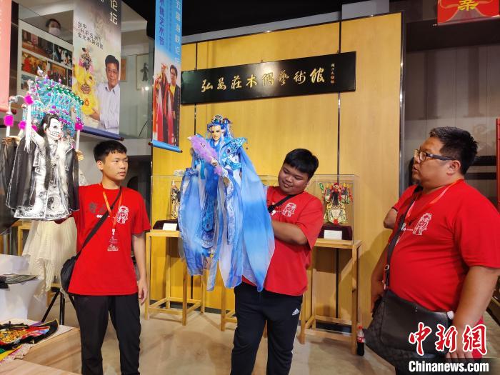 陳鵬安接受中新社記者采訪時說,自10歲開始學(xué)金光布袋木偶戲,至今已有近8年時間,課余時間與它為伴?!拔业陌职忠彩菑氖逻@個行業(yè)的,從小就喜歡看他表演。現(xiàn)在,我想從他的手上接過這個接力棒。”