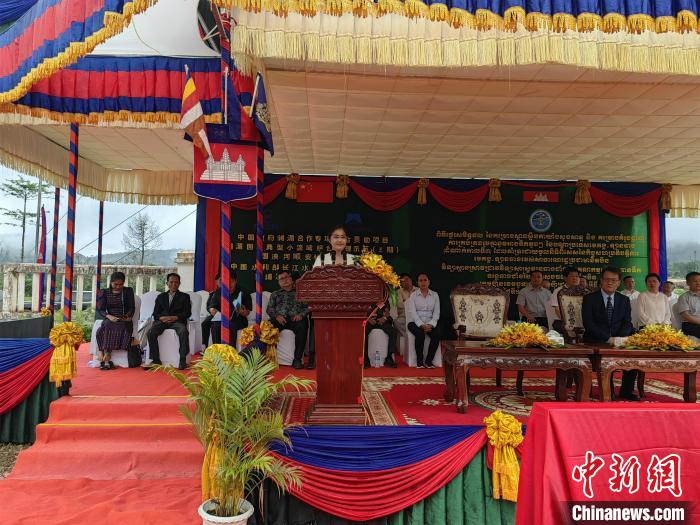 中新社金邊6月19日電 (記者 楊強(qiáng))當(dāng)?shù)貢r(shí)間6月18日,瀾湄合作專項(xiàng)基金“瀾湄國(guó)家典型小流域綜合治理示范(三期)”項(xiàng)目俄勒塞村成果移交儀式在柬埔寨國(guó)公省莫邦縣舉行。中國(guó)駐柬埔寨大使館公使銜參贊趙海燕、柬埔寨國(guó)公省省長(zhǎng)密杜娜·布通以及當(dāng)?shù)馗鹘缑癖?00余人出席。