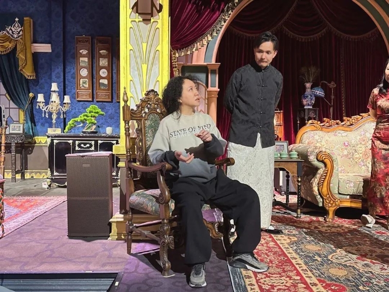 小劇場(chǎng)里,王潮歌正在給演員說戲