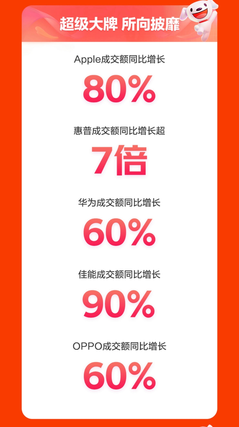 企業(yè)采購市場的蓬勃發(fā)展,吸引著眾多品牌紛紛入局,今年諸多3C數(shù)碼品牌在京東618也紛紛收獲了高質(zhì)量增長。數(shù)據(jù)顯示,Apple成交額同比增長80%;惠普成交額同比增長超7倍;華為成交額同比增長60%;佳能成交額同比增長90%;OPPO成交額同比增長60%。