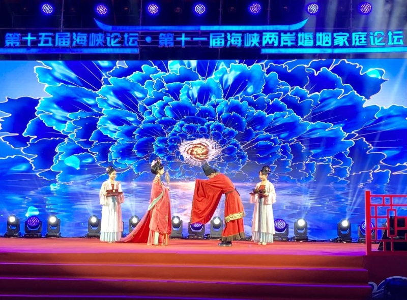 6月18日,表演者在第十一屆海峽兩岸婚姻家庭論壇文藝晚會(huì)上表演婚禮慶典。新華社記者 許雪毅 攝
