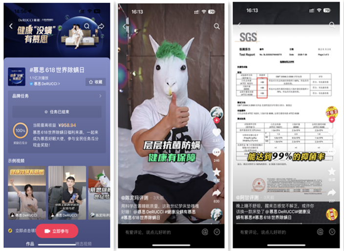 慕思發(fā)布的#慕思618世界除螨日#品牌活動得到了全網(wǎng)慕思新老用戶的熱烈響應(yīng),目前已近萬名抖音用戶上傳了自己在家中進(jìn)行除螨、吸塵的視頻,話題累計互動量破億,在抖音帶動了一場家庭深度大掃除運(yùn)動,掀起全網(wǎng)“除螨”熱。