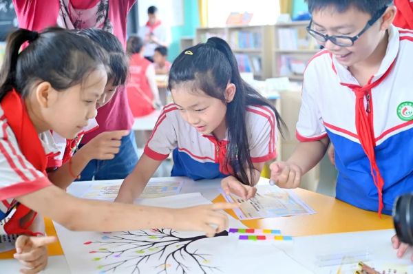 同學(xué)們也在圖書(shū)管內(nèi)展開(kāi)了一場(chǎng)閱讀課堂,并繪制了愿望墻和愛(ài)心樹(shù)。