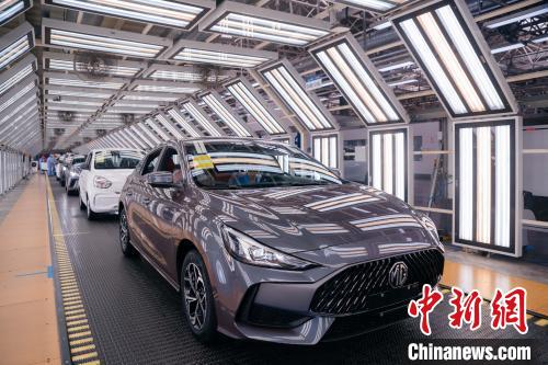 6月18日,福建省寧德市的上汽寧德基地總裝車間里,一輛輛整車即將出廠。中新社記者李南軒攝