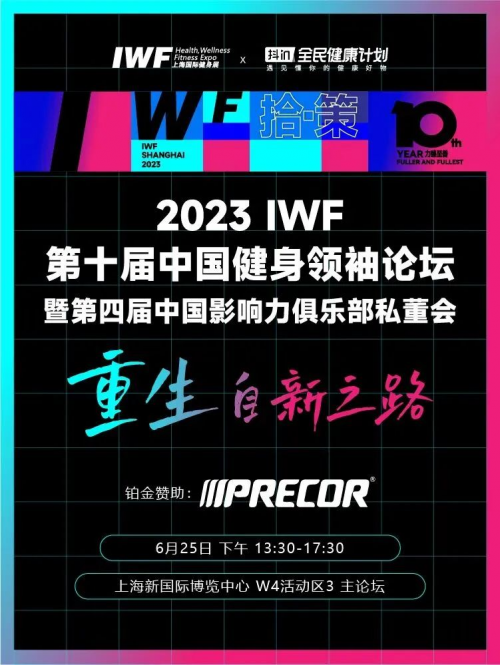 2023 IWF上海國際健身展將以“回顧過往,展望未來”為基調(diào),錨定“大體育+大健康”為主題,于6月24-26日在上海新國際博覽中心舉辦。第十屆中國健身領袖論壇暨第四屆中國影響力俱樂部私董會也將同期于6月25日在上海新國際博覽中心W4舉行,Precor必確以鉑金贊助商身份參與此次討論交流,以王牌對話模式開啟論壇內(nèi)容,匯聚頭部品牌智慧。圍繞市場模型、拓新獲客等話題展開,深度探究時代變革下健身商業(yè)品牌的自新之路。