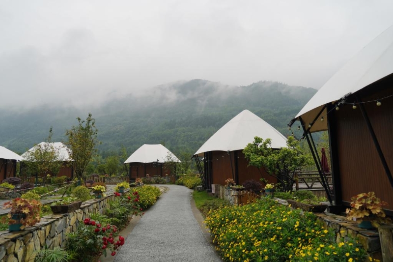 清平鎮(zhèn)地處九頂山南麓山腳,九頂山也是長江支流沱江的源頭所在地。2017年,借力大熊貓國家公園建設(shè),清平鎮(zhèn)開始封停礦井進行生態(tài)修復,轉(zhuǎn)型發(fā)展旅游,告別“礦業(yè)經(jīng)濟”。礦山關(guān)停后,劉光蘭所在的鹽井村村集體成立了金色清平旅游開發(fā)公司,分批建設(shè)旅游設(shè)施,打造旅游項目,她加入旅游公司,從一名導游逐漸做到露營、餐飲等項目的業(yè)務負責人。