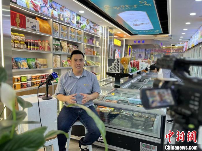近日,在南京的經(jīng)銷商店鋪里,廣運(yùn)農(nóng)業(yè)生物科技(江蘇)有限公司銷售總監(jiān)林昆佑向中新社記者講述家族創(chuàng)業(yè)史?!≈行律缬浾?朱曉穎 攝