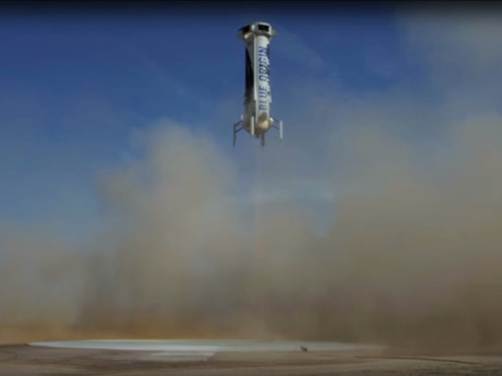 這張2016年6月19日的視頻截圖顯示,美國藍色起源公司“新謝潑德”火箭準備在美國得克薩斯州范霍恩附近的試驗場著陸。(新華社/美聯(lián))