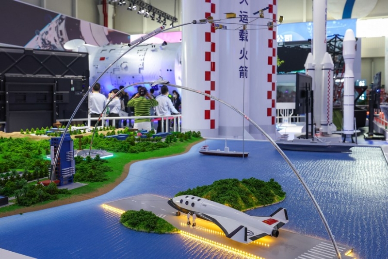 2022年11月11日,中國新一代運載火箭模型及發(fā)動機實物亮相中國航展。新華社記者 劉大偉 攝
