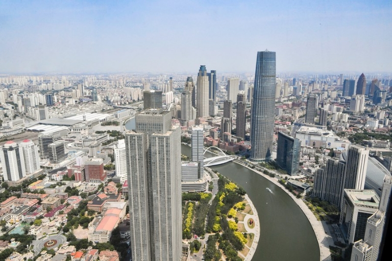這是6月16日從直升機(jī)上拍攝的天津海河沿線城市景觀。新華社記者 孫凡越 攝