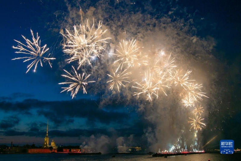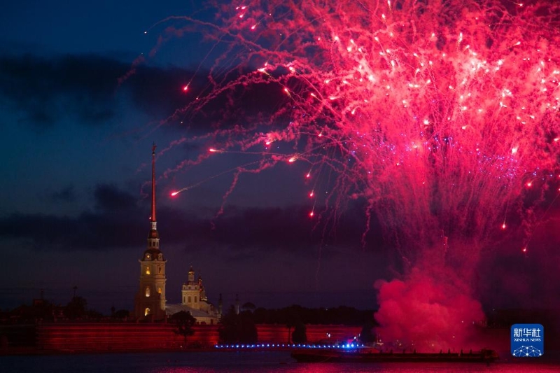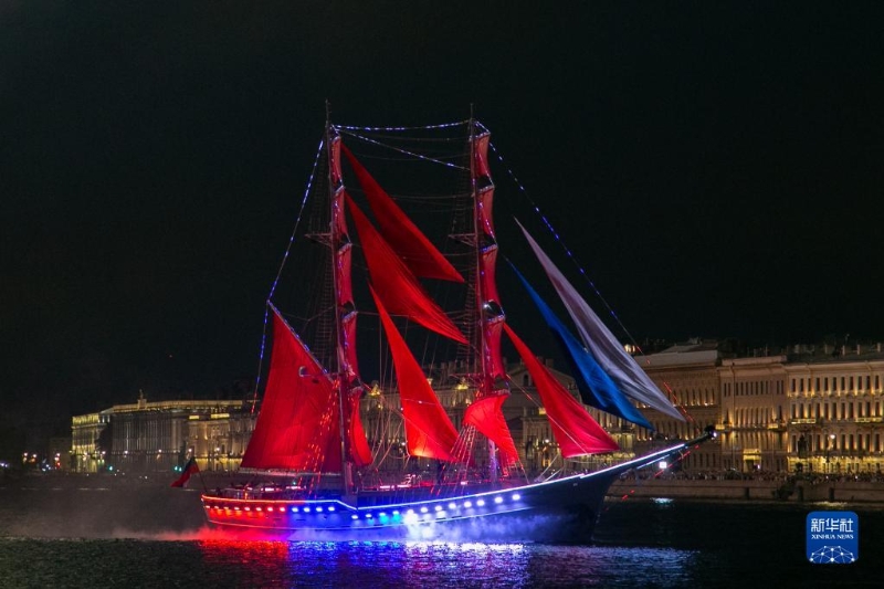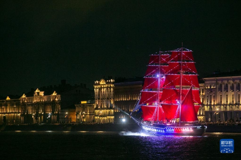 6月24日晚至次日凌晨,俄羅斯圣彼得堡迎來(lái)一年一度的“紅帆節(jié)”。節(jié)日期間,冬宮廣場(chǎng)上演大型音樂(lè)會(huì),一艘“紅帆”在漫天煙花的映襯下駛過(guò)涅瓦河,慶祝中學(xué)生畢業(yè)、走向人生新起點(diǎn)。
