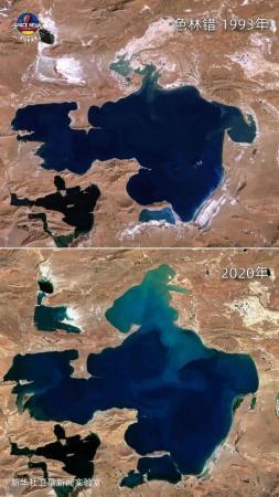 △色林錯(cuò)的水域有了明顯的增加。圖片來源:新華社衛(wèi)星新聞實(shí)驗(yàn)室