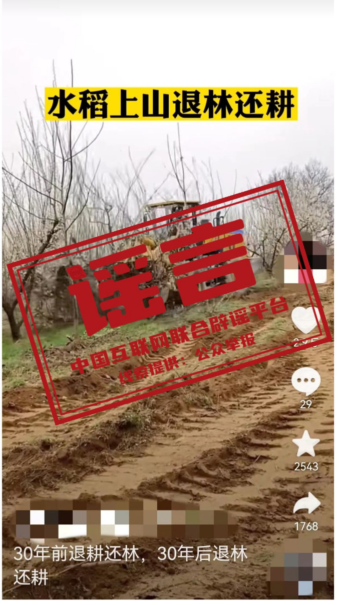 真相:今年以來,我國部分地方對轄區(qū)內(nèi)違規(guī)占用耕地種樹造林的現(xiàn)象進(jìn)行糾偏,要求整改復(fù)耕、恢復(fù)種糧。一些網(wǎng)絡(luò)自媒體在反映這一現(xiàn)象時(shí),生造了一個(gè)“退林還耕”的概念,并與此前國家出臺(tái)的“退耕還林”政策相提并論。對此,中央農(nóng)村工作領(lǐng)導(dǎo)小組辦公室介紹,網(wǎng)傳所謂“退林還耕”的情況,實(shí)際上是對違規(guī)占用耕地種樹造林的土地恢復(fù)種糧,即“違規(guī)占用耕地整改復(fù)耕”。(來源:新華社)