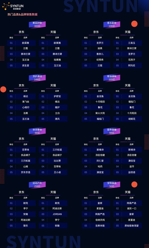 品牌方面,各熱門品類品牌銷售額排名如下圖顯示: