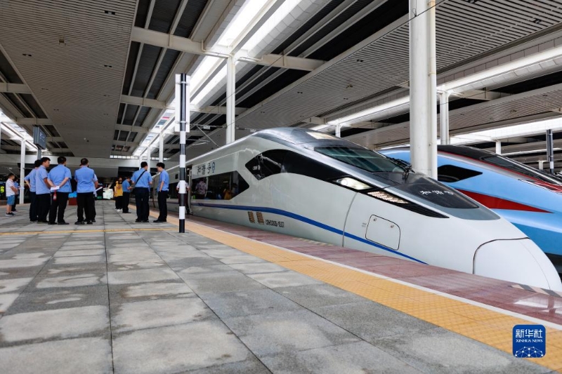 6月26日,55311次試驗列車在貴陽北站等待出發(fā)。
