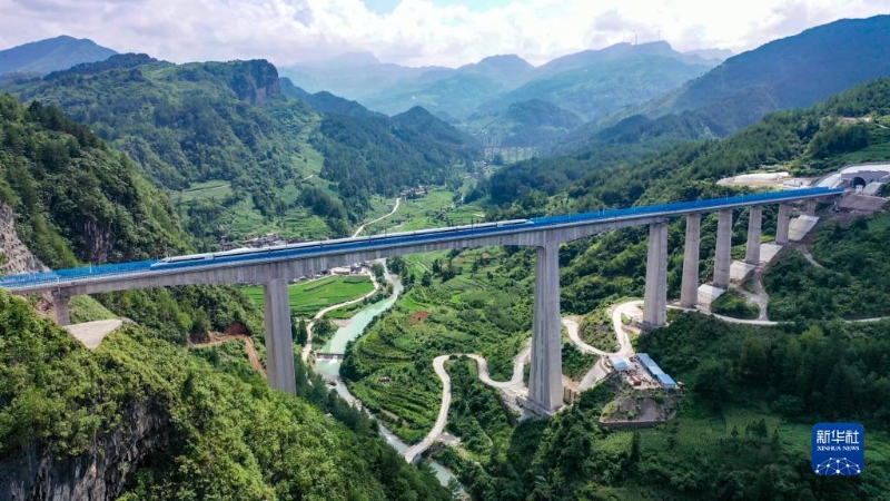 6月26日,試驗列車經(jīng)過貴州貴定縣境內(nèi)的桐子園雙線特大橋。