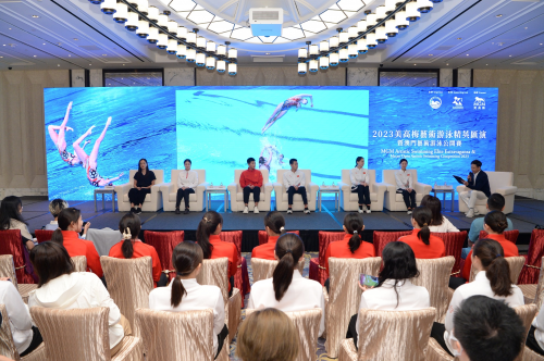 03ab美高梅增設(shè)“分享交流座談會”,一眾國家花泳運動員受邀分享各自的運動生涯并介紹花泳運動。