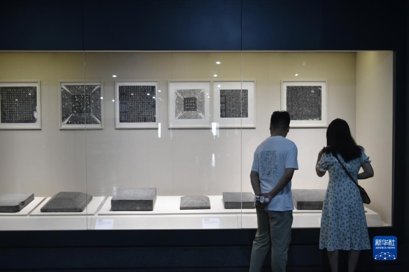 6月26日,游人在河南省安陽市殷墟遺址甲骨碑廊游覽。