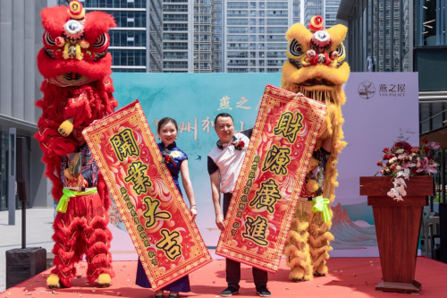 致辭的話音剛落,禮花漫天飛舞,剪彩儀式正式開始,燕之屋執(zhí)行董事、總裁李有泉,燕之屋副總經(jīng)理、連鎖事業(yè)部總經(jīng)理翁惠貞與眾嘉賓一起上臺、同執(zhí)運剪,綢帶飄曳,標志燕之屋蘇州旗艦店正式啟航。隨后,點睛蘇醒后的雄獅生龍活虎,昂首挺胸,預(yù)示著燕之屋蘇州旗艦店乘風(fēng)破浪、昂首起航的決心與魄力。一如賀聯(lián)所示:開業(yè)大吉、財源廣進。一派喜慶的盛景下,現(xiàn)場領(lǐng)導(dǎo)嘉賓和全體工作人員合影留念,充分展現(xiàn)了燕之屋蘇州團隊奮發(fā)有為、積極向上的精神面貌。