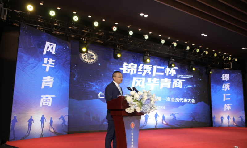 會上,仁懷市青年商會第一屆理事會會長唐暉作工作報告。