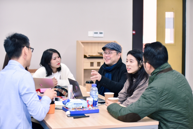 北師大未來設(shè)計學(xué)院特聘教授葉錦添與學(xué)生討論項目