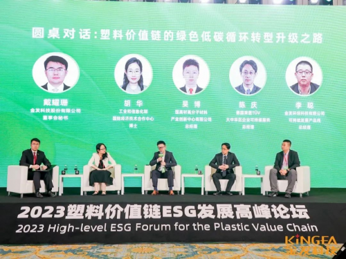 圓桌對話環(huán)節(jié)圍繞“塑料價值鏈的綠色低碳循環(huán)轉型升級之路”展開討論。工業(yè)和信息化部國際經(jīng)濟技術合作中心胡華博士介紹了中國綠色制造體系取得的成果及“十四五”期間塑料行業(yè)的挑戰(zhàn)與機遇。德國萊茵TüV大中華區(qū)企業(yè)可持續(xù)服務總經(jīng)理陳慶分享了目前從國際到國內(nèi)關于零碳/低碳/碳中和工廠、零廢棄工廠、零填埋的工廠等維度相對成熟的全球標準及相關認證。國高材高分子材料產(chǎn)業(yè)創(chuàng)新中心有限公司總經(jīng)理吳博分析了現(xiàn)在全球范圍內(nèi)比較認可的產(chǎn)品碳足跡的計算方法標準、數(shù)據(jù)庫和工具。金發(fā)環(huán)??萍加邢薰究沙掷m(xù)發(fā)展產(chǎn)品線總經(jīng)理李聰介紹了金發(fā)科技在塑料循環(huán)經(jīng)濟方面的發(fā)展歷程,以及最近兩三年取得的最新進展。最后論壇嘉賓從各自的角度對塑料價值鏈的利益相關方提出綠色、低碳、循環(huán)轉型的建議。