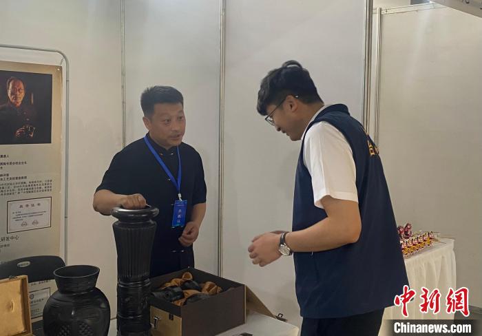 圖為臺胞參觀非遺“齊河黑陶”。 呂妍 攝