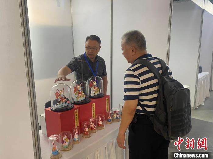 圖為臺胞參觀非遺“兔子王”?!五?攝