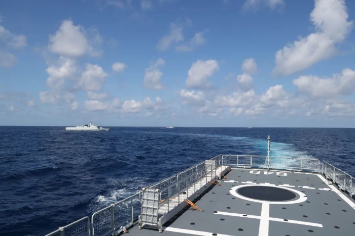 在為期近2天的聯(lián)合巡邏中,中越雙方艦艇編隊(duì)互相通報(bào)了巡邏海區(qū)水文氣象、??涨闆r和編隊(duì)航向航速等信息要素,加強(qiáng)彼此海上通信聯(lián)絡(luò)和資源共享交流。此外,中越聯(lián)合巡邏艦艇編隊(duì)還完成了燈光信號(hào)和聯(lián)合搜救等既定演練項(xiàng)目。演練期間,雙方密切溝通、行動(dòng)高效,相互傳遞積極友好信號(hào),強(qiáng)化海上合作能力,取得預(yù)期效果。