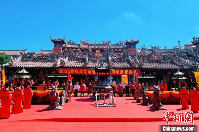 中新社泉州6月28日電 (記者 孫虹)在28日舉辦的2023癸卯年關(guān)帝誕辰1863周年祭祀典禮上,來自馬來西亞、越南、泰國、印尼等國家及臺(tái)灣地區(qū)的36所宮廟、逾千名海內(nèi)外信眾,聚集泉州通淮關(guān)岳廟同祭關(guān)帝。
