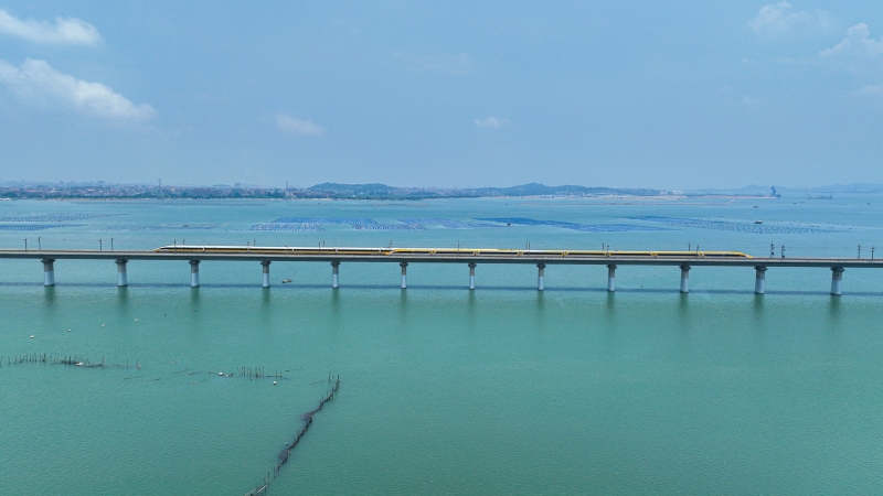 6月28日在湄洲灣跨海大橋,試驗列車交會運行。 鐵科院集團公司供圖