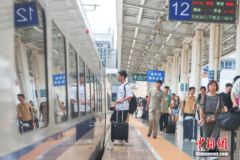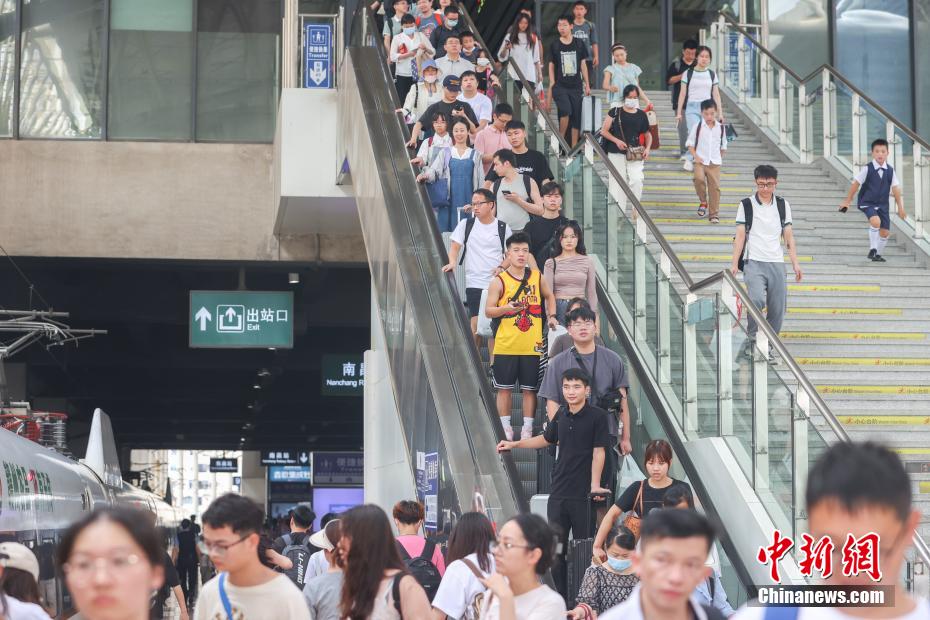 7月1日,為期62天的2023年全國(guó)鐵路暑期運(yùn)輸啟動(dòng)。7月1日至8月31日,全國(guó)鐵路預(yù)計(jì)發(fā)送旅客7.6億人次,日均發(fā)送1200萬人次以上。 圖為江西南昌站,不少旅客從站臺(tái)上走過。劉力鑫 攝