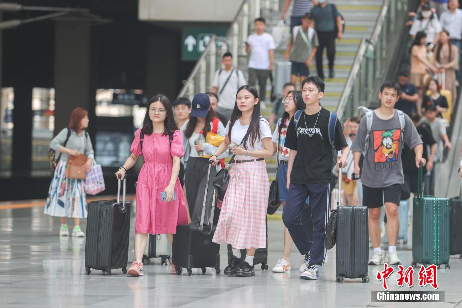 7月1日,江蘇南京,旅客在火車站出行。當(dāng)日,為期62天的2023年中國(guó)鐵路暑期運(yùn)輸啟動(dòng)。據(jù)悉,7月1日至8月31日,全國(guó)鐵路預(yù)計(jì)發(fā)送旅客7.6億人次,日均發(fā)送1200萬人次以上。中新社記者 泱波 攝