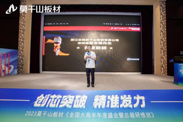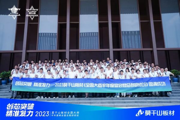 為共謀莫干山板材下半年規(guī)劃發(fā)展之路,洞悉趨勢(shì),把握機(jī)遇,6月30日至7月2日,莫干山板材于寧波召開(kāi)“創(chuàng)芯突破 精準(zhǔn)發(fā)力”2023莫干山板材全國(guó)大商半年度峰會(huì)暨總裁研修班。浙江升華云峰新材股份有限公司董事長(zhǎng)顧水祥先生,浙江云峰莫干山營(yíng)銷有限公司總經(jīng)理姜全建先生,費(fèi)縣云峰莫干山裝飾材料有限公司副總經(jīng)理沈少力先生,浙江云峰莫干山營(yíng)銷有限公司副總經(jīng)理顧仲凱先生、沈敏華先生、葉斌先生、房金秋先生,浙江云峰莫干山營(yíng)銷有限公司總經(jīng)理助理凌歡歡先生、楊紅英女士,以及莫干山板材經(jīng)銷商家人們蒞臨本次會(huì)議。
