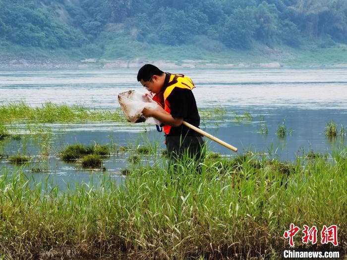 圖為工作人員開展重要生境水文調(diào)查?!≈貞c市農(nóng)業(yè)農(nóng)村委供圖