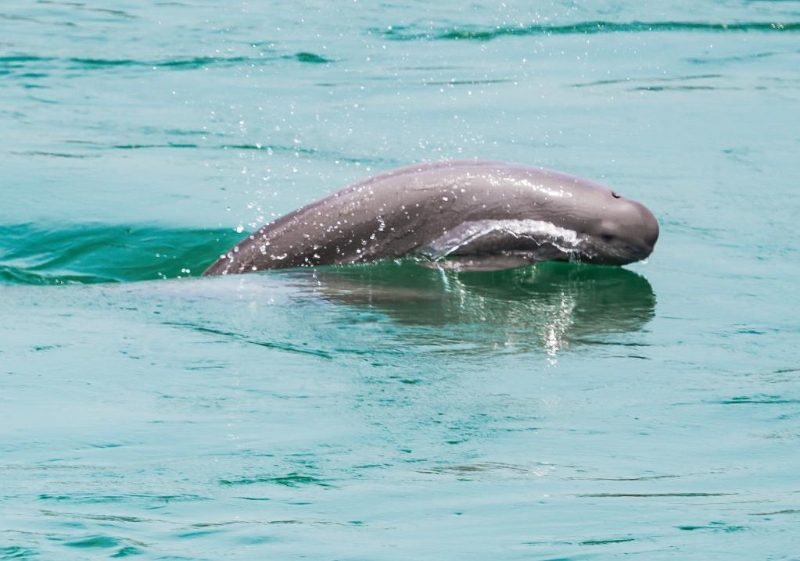 江豚在葛洲壩下游水域逐浪嬉戲。 新華社發(fā)(2023年5月20日 鄭家裕攝)